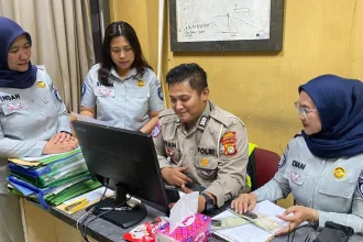 Serpong,bantenpedia.id - Petugas Jasa Raharja Samsat Serpong Satya Wardhani dan Indah Hayati…