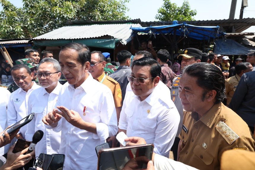 Cilegon, Bantenpedia.id – Penjabat (Pj) Gubernur Banten Al Muktabar mendampingi Presiden Joko Widodo saat melakukan peninjauan serta pengecekan harga dan stok kebutuhan pokok di Pasar Kranggot, Kota Cilegon, Selasa (12/9/2023).