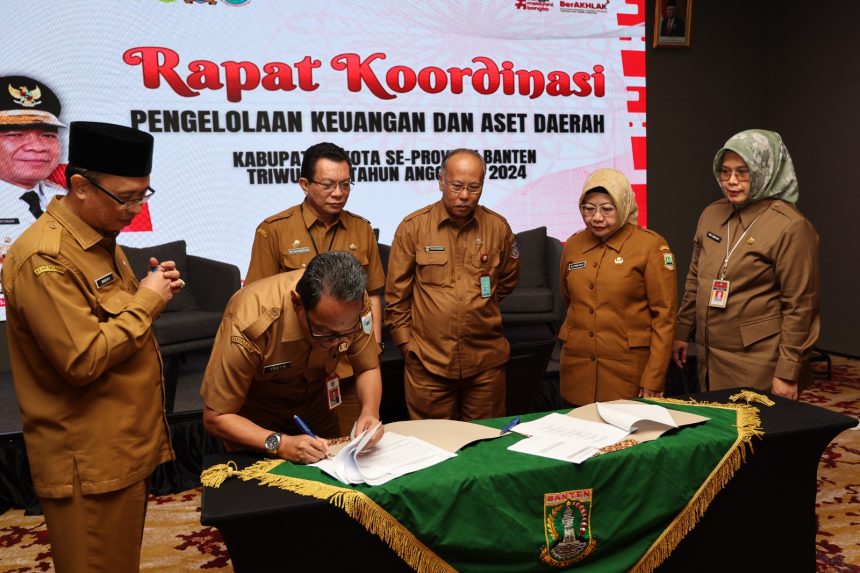 Hal itu diungkap Al Muktabar secara daring saat membuka Rapat Koordinasi Pengelolaan Keuangan dan Aset Daerah se-Provinsi Banten di Hotel Aston Jl. Syech Nawawi Al Bantani No. 29, Boru, Kota Serang, Selasa (23/2024).