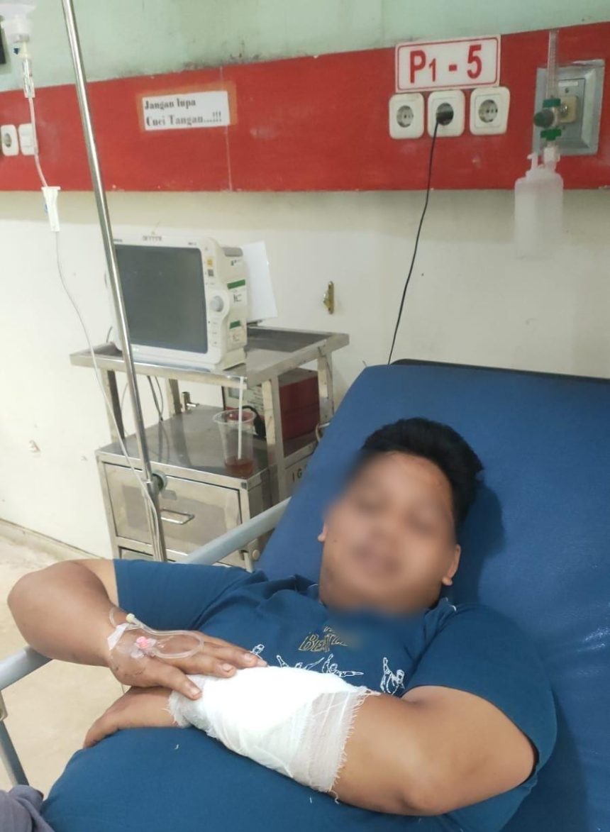 Berto Purba sapaan akrabnya mengalami luka robek pada tangan sebelah kirinya, sehingga harus dilarikan ke Rumah Sakit dr Dradjat Prawiranegara di Kota Serang.