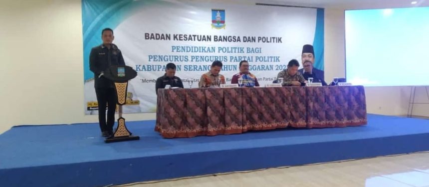 Serang – Badan Kesatuan Bangsa dan Politik (Bakesbangpol) Kabupaten Serang memberikan pendidikan politik bagi pengurus partai politik (parpol) di Kabupaten Serang. Pendidikan politik untuk meningkatkan pemahaman dan pengetahuan mengenai pengadministrasian serta pembuatan laporan pertanggungjawaban keuangan partai politik secara aktual dan akuntabel.