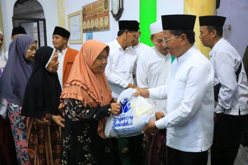 Wali Kota Tangerang, H.Arief Wismansyah yang berkesempatan melaksanakan ibadah salat tarawih di Masjid Al- Mu’min, Kelurahan Paninggilan Utara, Kecamatan Ciledug, membagikan langsung bantuan berupa 28 paket sembako kepada para warga yang terdata dalam Pensasaran Percepatan Penghapusan Kemiskinan Ekstrem (P3KE).