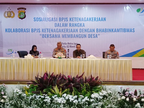 Dirbinmas Polda Metro Jaya Kombespol, Badya Wijaya, saat sambutan pada acara itu menyampaikan sosialisasi BPJS Ketenagakerjaan diberikan kepada Bhabinkamtibmas dalam rangka mendukung program pemerintah yang diamanahkan kepada BPJS Ketenagakerjaan untuk memberikan perlindungan jaminan sosial kepada pekerja Indonesia hingga ke desa atau kelurahan.