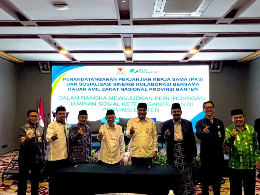 SERANG, Bantenpedia.id – BPJS Ketenagakerjaan Kantor Wilayah Banten melakukan penandatanganan Perjanjian Kerja Sama (PKS) dan sosialisasi sinergi kolaborasi bersama Badan Zakat Nasional Provinsi Banten dalam rangka mewujudkan perlindungan jaminan sosial ketenagakerjaan Provinsi Banten.