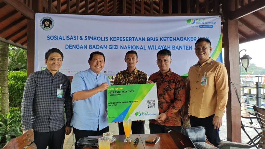 “Hari ini kami melakukan sosialisasi program jaminan sosial ketenagakerjaan dan penyerahan kartu peserta BPJS Ketenagakerjaan kepada perwakilan Badan Gizi Nasional Wilayah Banten,” kata Hazairin di Jagarawa, Kota Tangerang. Rabu, 2 Juli 2025.