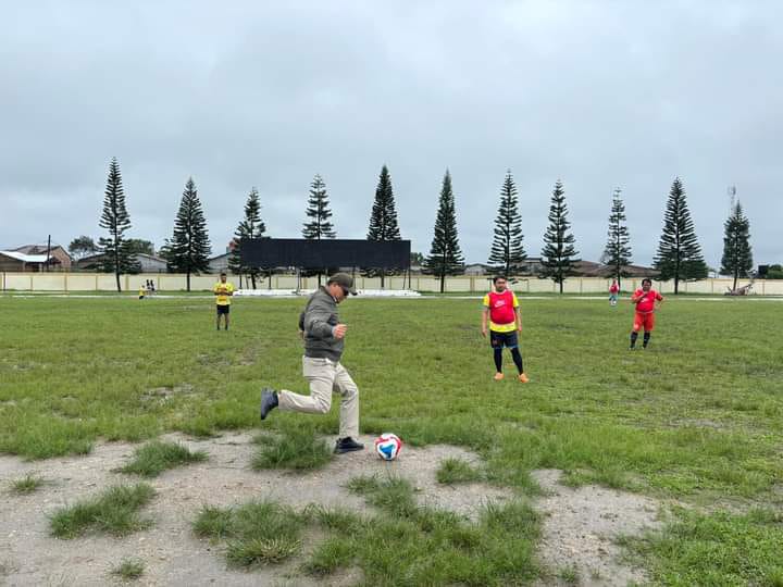Pantauan media, usai diskusi dan tanya jawab antara peserta dan Calon Bupati, Tino melakukan “Kick Off” untuk membuka pertandingan sepak bola Old Crack Fourfeo Oktober ceria TOSS.