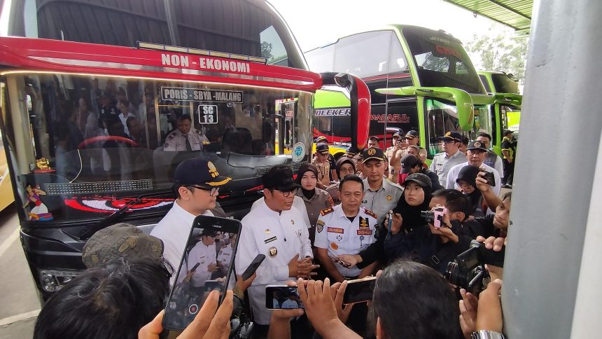 TANGERANG – Dalam rangka menyambut mudik lebaran tahun 2025, Dinas Perhubungan Kota Tangerang bersama Jasa Raharja Tangerang, BNN Kota Tangerang, Polres Metro Tangerang Kota, Dinas Kesehatan Kota Tangerang menggelar inspeksi keselamatan armada (Ramp Check) untuk kendaraan angkutan umum di Terminal Type A Poris Plawad Jl. Benteng Betawi, Kel. Poris Plawad, Kec. Cipondoh, Kota Tangerang pada Jumat (21/03/2025).
