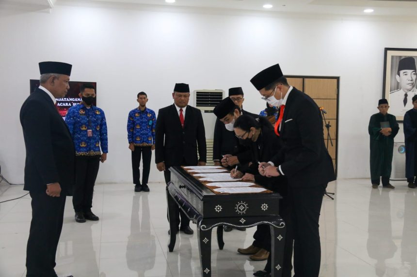 SERANG, Bantenpedia.id – Kepala Kantor Wilayah Kementerian Hukum dan HAM Banten, Tejo Harwanto melantik dan mengambil sumpah Notaris pengganti di Wilayah Kerja Provinsi Banten, Senin (22/05).