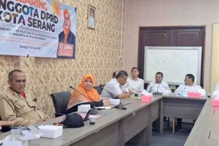 KOTA SERANG – Persoalan banjir yang kerap melanda wilayah Serang 2 menjadi perhatian DPRD Kota Serang. Anggota DPRD Kota Serang Fraksi Partai Keadilan Sejahtera (PKS), Erna Yuliawati, menggelar hearing bersama sejumlah Organisasi Perangkat Daerah (OPD) dan masyarakat terdampak, Sabtu (24/1/2026).