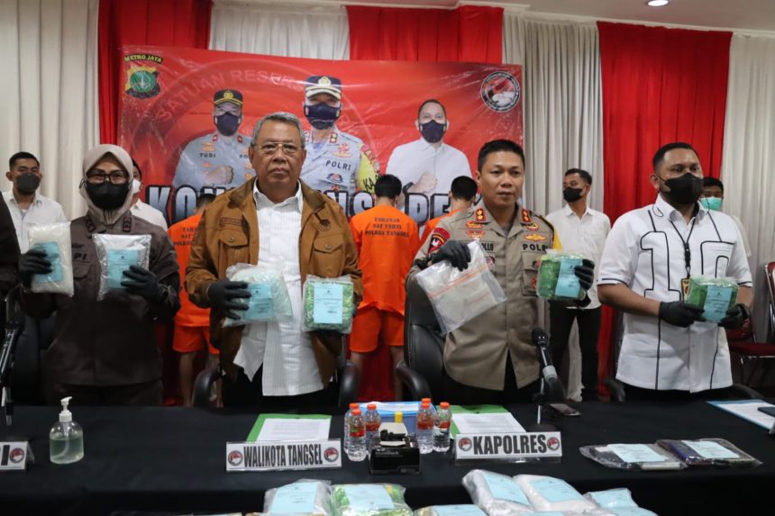 SERPONG, Bantenpedia.id – Kepolisian Resor Kota Tangerang Selatan berhasil menangkap empat tersangka kasus peredaran narkoba. Dari keempat tersangka tersebut, Polres Tangerang Selatan berhasil menggagalkan peredaran sabu-sabu seberat 32,5 kilogram dan 9.440 butir ekstasi.