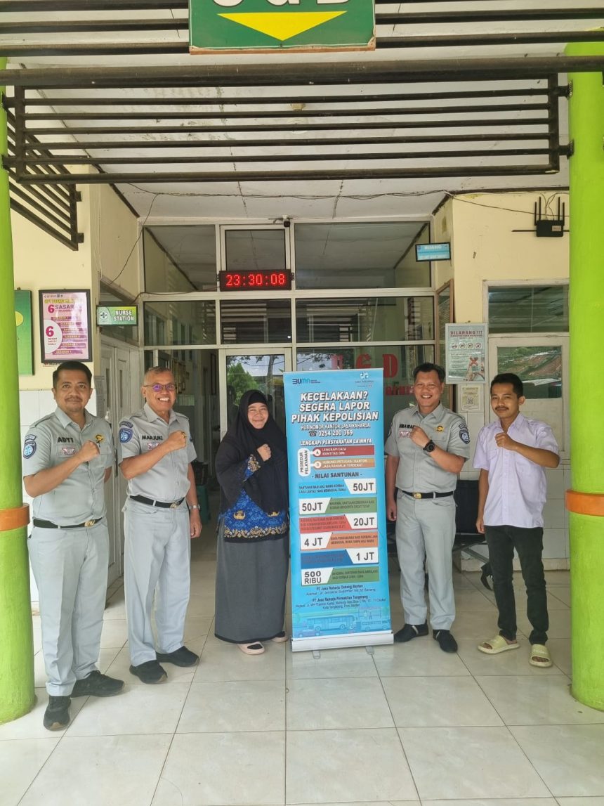 Serang, bantenpedia.id – Jasa Raharja Cabang Banten melakukan kunjungan Puskesmas Petir untuk melakukan koordinasi dan menigkatkan sinergi untuk penanganan korban kecelakaan lalulintas. Kegiatan tersebut dihadiri oleh Kasubag Administrasi Klaim Jasa Raharja Banten M.Himawan, Kasubag Pelayanan Jasa Raharja Cabang Banten Marjuki dan Wakil Kepala Puskesmas Petir dr.Eva.