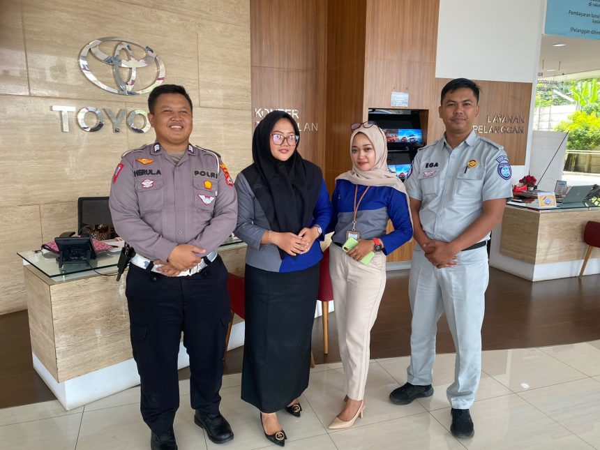 Pandeglang, bantenpedia.id – Petugas Jasa Raharja Cabang Banten Samsat Pandeglang Ega Cahya Pebrian melakukan kunjungan ke Toyota Auto 2000 wilayah Pandeglang. Kegiatan ini dalam rangka silaturahmi dan mensosialisasikan UU nomor 22 Pasal 74 Tahun 2009 tentang Lalu Lintas dan Angkutan Jalan, Sosialisasi tentang Signal Corporate (Samsat Digital Nasional) sekaligus Sosialisasi tentang Jaminan Asuransi Jasa Raharja kecelakaan lalu lintas, pada (Rabu, 24 April 2024)