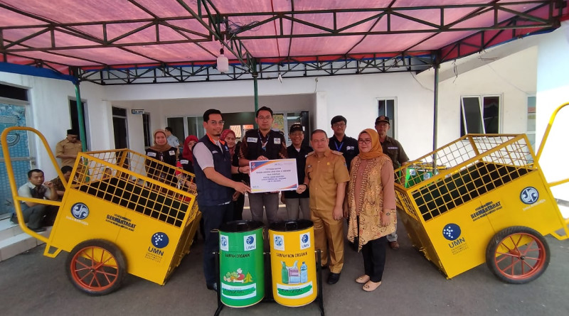 Bantuan TJSL berupa gerobak sampah dan tempat sampah diserahkan langsung oleh Kepala Cabang Banten Saldhy Putranto kepada Kepala Desa Kemuning Dadang Supriatna, S.Ip dan disaksikan oleh Direktur Lembaga Penelitian Pengabdian Masyarakat (LPPM) UMN Dr. Ir. P. M Winarno M. Kom dan perangkat desa serta masyarakat desa kemuning.
