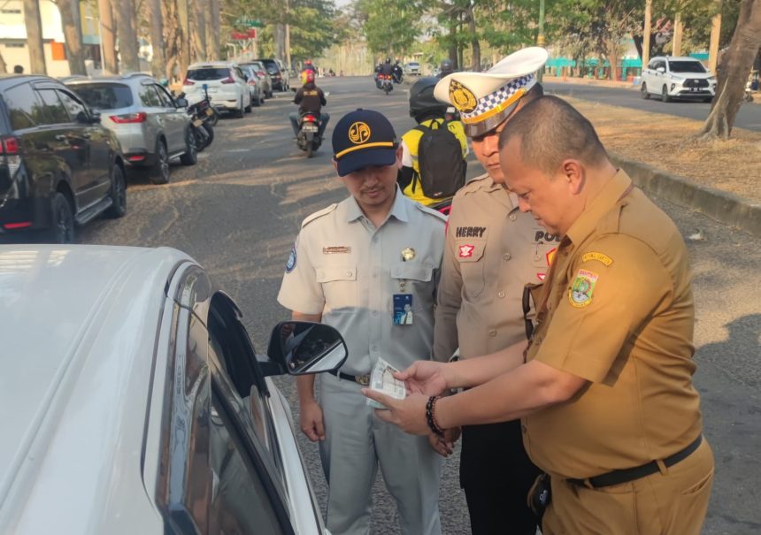 Cilegon – Jasa Raharja Cabang Banten bersama dengan UPTD PPD Samsat Cilegon dan Polresta Kota Cilegon menggelar Razia Pajak Kendaraan bertempat Bonakarta, Kota Cilegon, Selasa (26/09/2023). Kegiatan penertiban pajak kendaraan ini dilakukan sebagai salah satu upaya untuk meningkatkan kepatuhan masyarakat dalam pembayaran pajak kendaraan bermotor.