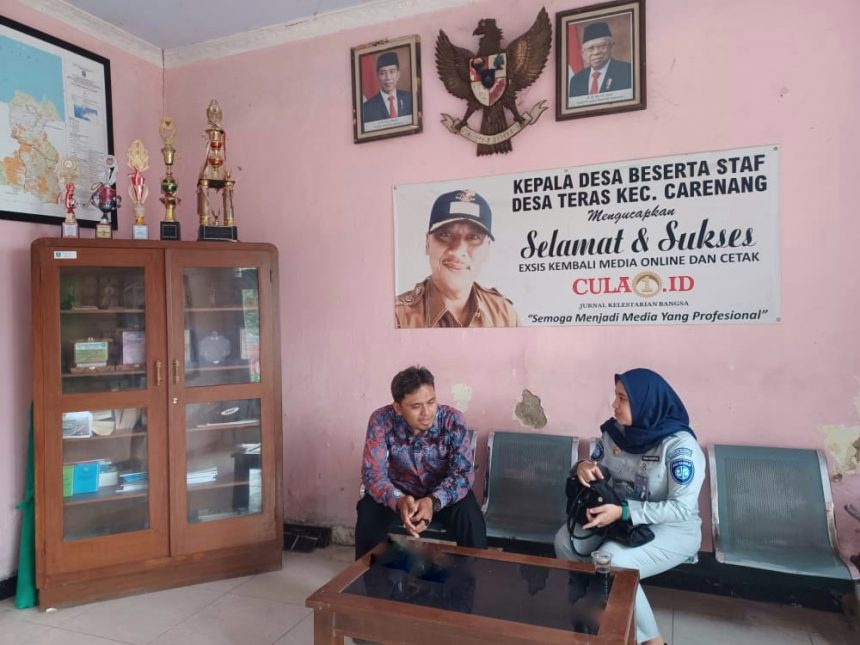 Kabupaten Serang, Bantenpedia.id – Petugas Jasa Raharja Samsat Kabupaten Serang melaksanakan kegiatan Silahturahmi ke Kelurahan Teras, Kec. Carenang, Kabupaten Serang. Kunjungan ini disambut baik oleh Ata Sumarta selaku Kepala Desa. Kamis, (22/12/22).