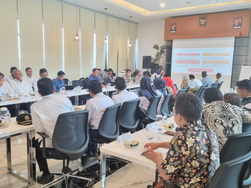 Cilegon – Bertempat di ruang rapat Terminal Executive Sosoro Merak Banten, Jumat,21 Juli 2023, Kepala Sub Bagian Iuran Wajib, Haris Subekti menghadiri kegiatan sosialisasi Keputusan Menteri Perhubungan Nomor KM 61 tahun 2023 tentang Tarif Penyelenggaraan Angkutan Penyeberangan Kelas Ekonomi Lintas Antar Provinsi dan Antar Negara