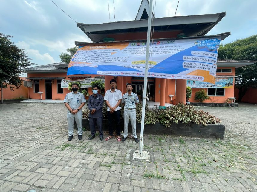 Cilegon, Bantenpedia.id – Petugas Jasa Raharja Samsat Cilegon, Nurochman, gencar lakukan pemasangan spanduk untuk sosialisasi di wilayah Cilegon, salah satunya pada tanggal 05 Oktober 2022 di Kelurahan Masigit Kecamatan Jombang Kota Cilegon dan disambut langsung oleh Lurah Masigit Bapak Mulyadi. Tentunya kegiatan ini sangat penting dilakukan sebagai sarana informasi dan edukasi kepada masyarakat khususnya pemilik kendaraan bermotor dan pengguna jalan.