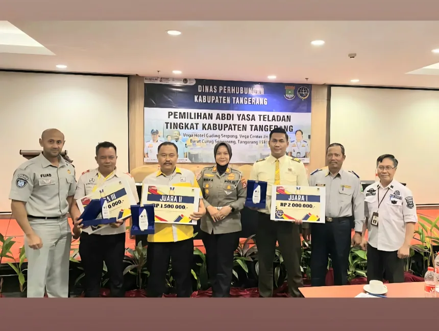 Tangerang, bantenpedia.id – PT Jasa Raharja Cabang Tangerang turut berpartisipasi dalam kegiatan pembinaan dan pemilihan Abdi Yasa Teladan tahun 2025 yang digelar oleh Dinas Perhubungan Kabupaten Tangerang pada hari Rabu, 18 Juni 2025 di Hotel Vega Gading Serpong, Tangerang. Kegiatan ini dibuka oleh Kepala Dinas Perhubungan Kabupaten Tangerang, Drs. H. Ahmad Taufiq, M.Si yang menyampaikan bahwa acara ini merupakan upaya kita bersama untuk meningkatkan profesionalisme dan keselamatan pengemudi angkutan umum di Kabupaten Tangerang. Turut pula hadir dalam acara ini Kasat Lantas Polresta Tangerang, AKP Riska Tri Aditia, S.IK, MM, Kepala Seksi Ketertiban dan Keselamatan Dinas Perhubungan Provinsi Banten, Kholid, S.Ag.