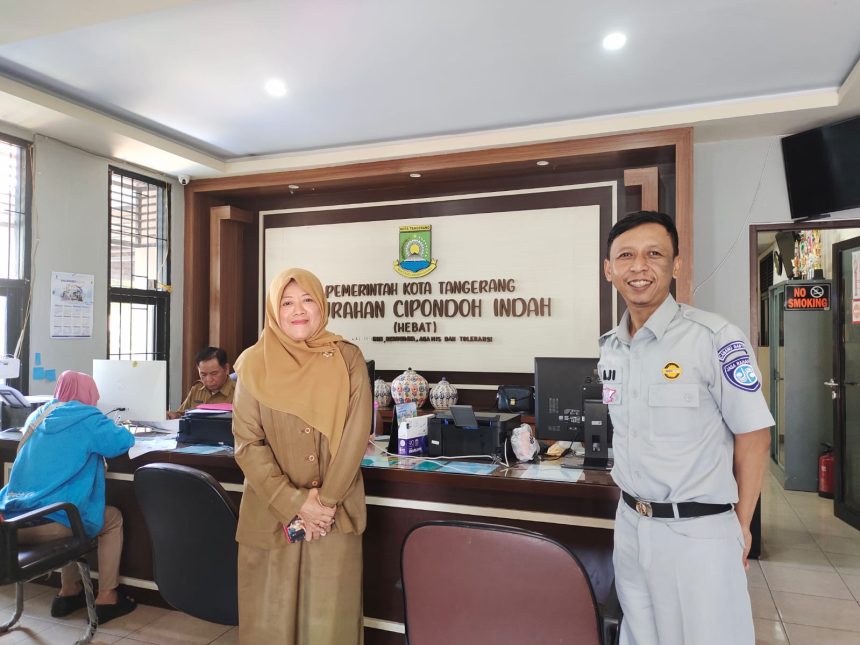 Tangerang – Petugas Samsat Gerai Larangan, Devianto Aji Prasetya melakukan kunjungan ke Kantor Kelurahan Cipondoh Indah langsung disambut oleh Kepala Seksi Tata Pemerintahan Ibu Tari (22/04) Sekaligus berkoordinasi dalam rangka sosialisasi pelayanan tentang jaminan asuransi kecelakaan lalu lintas dan sosialisasi program Samsat Digital Nasional (SIGNAL) di wilayah Provinsi Banten.