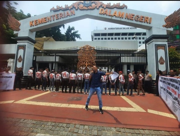 Kedatangan massa Koalisi Abal-Abal diterima oleh perwakilan Kemendagri Rega Tadeak Hakim selaku Pranata Humas Ahli Madya bidang Fasilitasi Pengaduan dan Pengelolaan Informasi Pusat Penerangan Sekretariat Jenderal