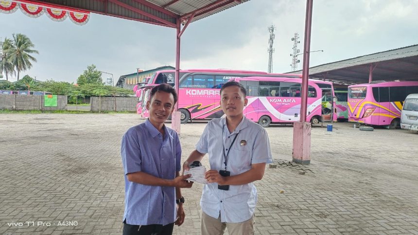 Tangerang – Sebagai bentuk dari Pelaksanaan Undang-Undang Nomor 33 Tahun 1964 tentang Dana Pertanggungan Wajib Kecelakaan Penumpang,Petugas Jasa Raharja Tim Samsat Balaraja yaitu Sdr Abdul Mukti, Riska Amelia dan Retno Saputra, melakukan Kegiatan Intensifikasi Penagihan untuk IWKBU (Iuran Wajib Kendaraan Bermotor Umum) di PO Komara.
