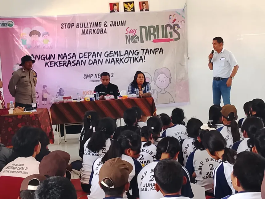 TANAH KARO, SUMUT – Polsek Juhar Polres Tanah Karo berperan aktif dalam upaya pencegahan kenakalan remaja melalui kegiatan sosialisasi bertajuk “Say No to Bullying and Drugs” yang digelar di SMP Negeri 2 Juhar, Dusun Tiga Siempat, Desa Pernantin, Kecamatan Juhar, Kabupaten Karo, pada Sabtu(23/8/2025).