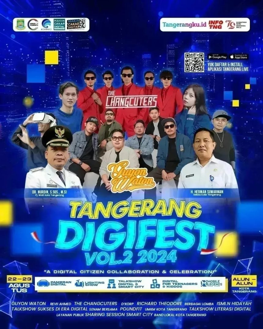Lanjutnya, Tangerang Digital Festival Vol.2 tahun 2024 mengusung tema ‘A Digital Citizen Collaboration & Celebration’ menghadirkan banyak kegiatan. Mulai dari, Talkshow Sukses di Era Digital, Talkshow Literasi Digital, Pameran Inovasi Digital, Bazar UMKM, Photobooth Immersive dengan guest star Guyon Waton dan The Changcuters.