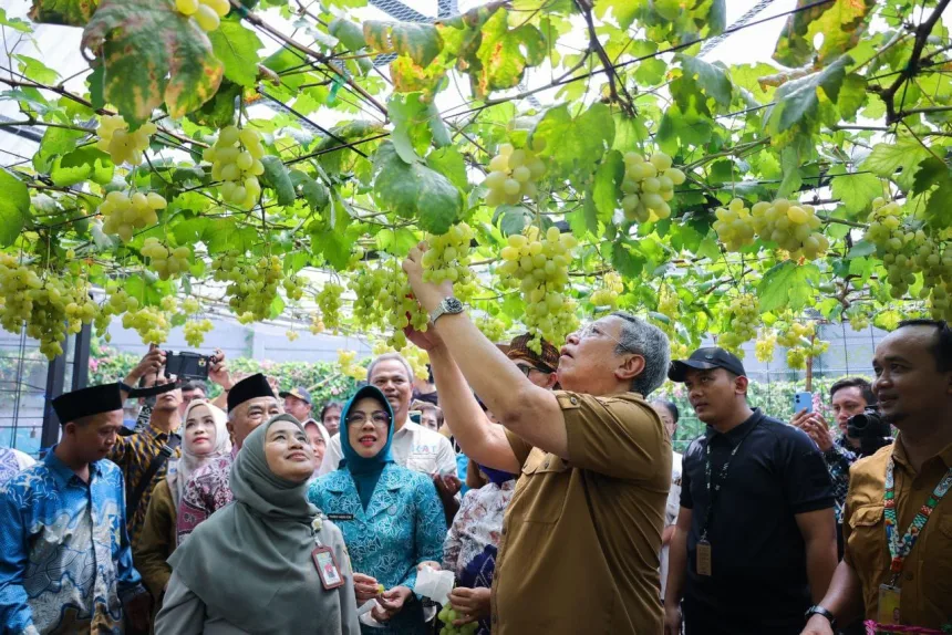CIPUTAT, bantenpedia.id – Panen Raya anggur Pondok Jaya Benyamin Davnie (Ponjay Bendav) menjadi alarm utama pengembangan pertanian agrikultur untuk wilayah Kota Tangerang Selatan. Anggur ini diharapkan bisa menjadi produk unggulan di Tangsel.