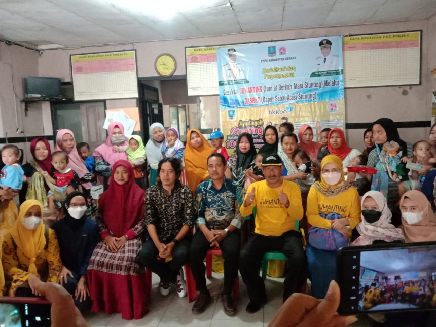 Serang,Bantenpedia.id – Pemerintah Kabupaten (Pemkab) Serang melalui Tim Percepatan Penurunan Stunting (TPPS) terus melakukan inovasi dalam menurunkan angka kasus stunting di Kabupaten Serang. Salah satunya dengan menyosialisasikan dan pencanangan Gerakan Jumanting melalui dapur sehat atasi stunting dengan sasaran di sepuluh (10) desa.