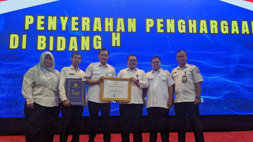 Serang, bantenpedia.id – Pemerintah Kabupaten (Pemkab) Serang menerima penghargaan sebagai Kabupaten Peduli Hak Asasi Manusia (KKP HAM) dari Kementerian Hukum dan HAM Republik Indonesia. Penghargaan diberikan oleh Penjabat (Pj) Gubernur Banten, A. Damenta kepada Pj Sekda Kabupaten Serang, Rudy Suhartanto di Pendopo Gubernur Banten KP3B Curug Kota Serang pada Rabu, 8 Januari 2025.