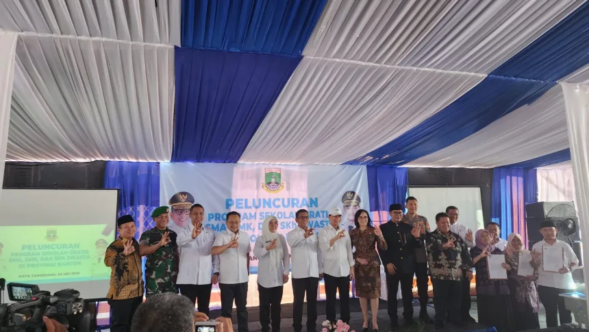 Serang – Pemerintah Provinsi Banten resmi meluncurkan program Sekolah Gratis untuk SMA, SMK dan SKH Swasta. Peluncuran program andalan Andra Soni dan Dimyati Natakusumah itu dilaunching bertepatan dengan hari pendidikan nasional di SMA YP Karya Kota Tangerang, Jumat (2/5/2025).