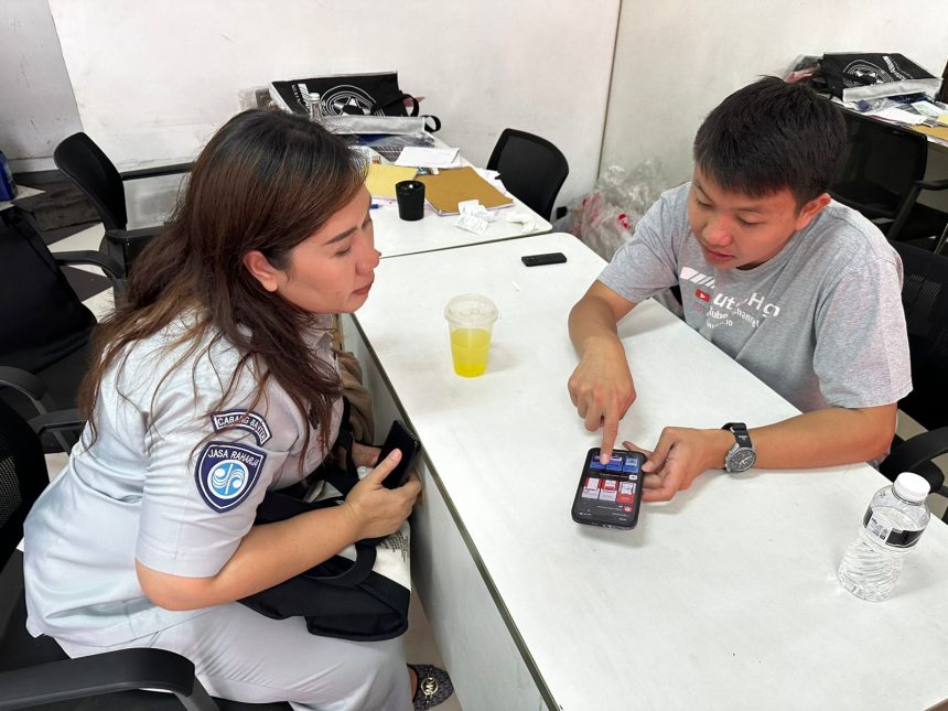 Tangerang – Petugas Jasa Raharja Tangerang Cinthya Rouwena melakukan kunjungan ke Lucky Motor yaitu salah satu showroom mobil bekas yang berlokasi di Jl. Imam Bonjol, Kota Tangerang. Showroom ini menjual mobil bekas berkualitas dengan harga bersaing. (17/07/2024)