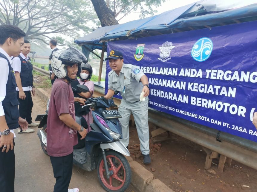 Tangerang – Tim Gabungan SAMSAT Cikokol Kembali gelar Razia kepatuhan Surat Tanda Kendaraan Bermotor (STNK) di Jalan Raya Karet – Kota Bumi Bayur Kecamatan Karawaci Kota Tangerang. Tim Gabungan yang melibatkan UPT PPD Cikokol, Unsur Kepolisian Polres Metro Tangerang, dan Jasa Raharja Perwakilan Tangerang Cabang Banten berhasil menjaring 100 kendaraan yang belum tertib STNK pada Rabu (26/07/2023).