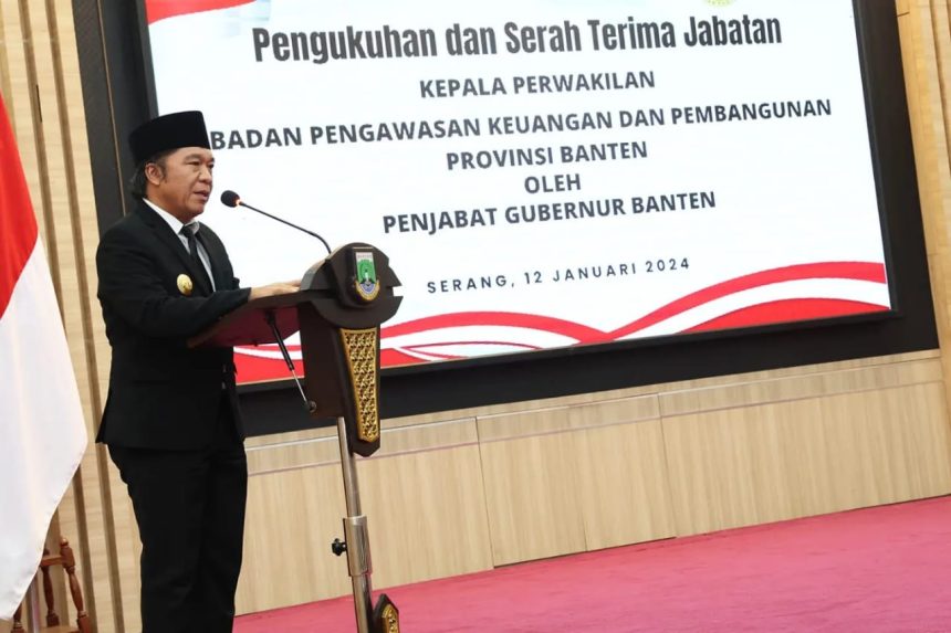 bantenpedia.id Penjabat (Pj) Gubernur Banten Al Muktabar mengukuhkan Suyarsih Fifi Herwati sebagai Kepala Perwakilan Badan Pengawasan Keuangan dan Pembangunan (BPKP) Provinsi Banten di Pendopo Gubernur Banten, KP3B Curug, Kota Serang pada Jumat (12/1/2024). Perwakilan BPKP sebagai penguatan Aparat Pengawas Internal Pemerintah (APIP) Pemerintah Provinsi Banten dalam pencegahan korupsi.