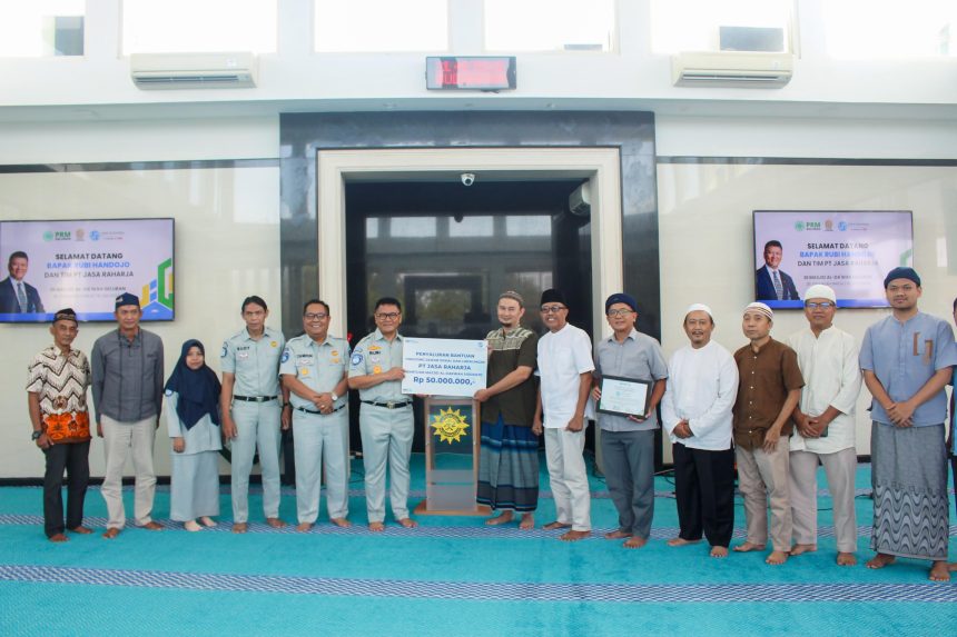Sidoarjo, Djawaranews.com – Jasa Raharja menyerahkan bantuan sebesar Rp50 juta untuk perbaikan Masjid Al-Dakwah Taman Pondok Jati di Geluran, Sidoarjo, Jawa Timur. Bantuan diserahkan oleh Direktur SDM & Umum Jasa Raharja, Rubi Handojo kepada pengurus masjid, pada Senin (01/07/2024).