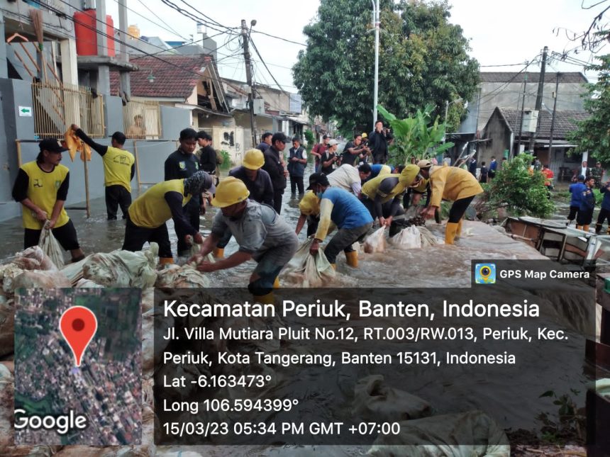 Kota Tangerang, Bantenpedia.id – Hujan dengan intensitas tinggi, ditambah air kiriman dari Sungai Cirarab yang tak terkendali, mengakibatkan Situ Bulakan, Kecamatan Periuk meluap, Rabu (15/3/23). Kondisi ini mengakibatkan sejumlah pemukiman terendam banjir dengan ketinggian 20cm hingga 120 cm, diantaranya Komplek Perumahan Mutiara Pluit, Garden City, Periuk Damai dan wilayah sekitarnya.