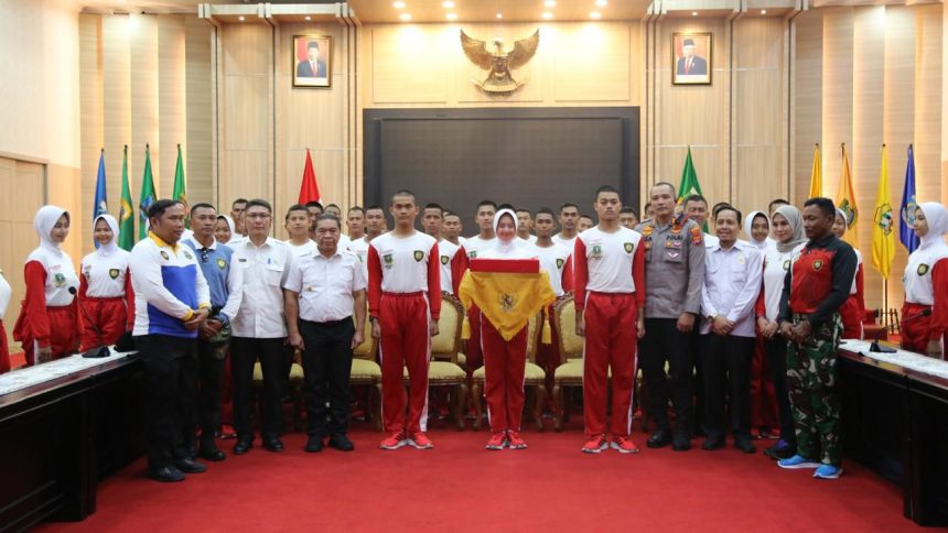 Kota Serang, bantenpedia.id – Penjabat (Pj) Gubernur Banten Al Muktabar menyerahkan Duplikat Bendera Pusaka kepada Pasukan Pengibar Bendera Pusaka (Paskibraka) Provinsi Banten di Pendopo Gubernur Banten, KP3B Curug, Kota Serang, Rabu (14/8/2024). Duplikat Bendera Pusaka nantinya akan dikibarkan pada 17 Agustus 2024.