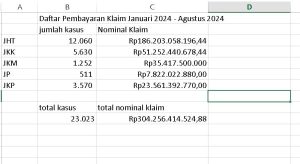 Sementara itu dari sisi manfaat, hingga agustus 2024 BPJS Ketenagakerjaan Serang telah membayarkan sebanyak 23.023 klaim dengan total nominal mencapai Rp 304.256.414.524,88