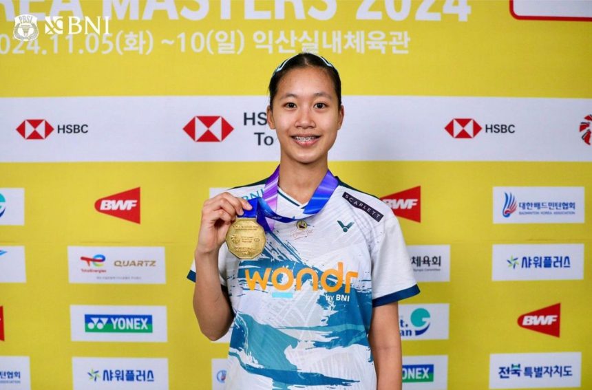 Tunggal putri Skuad Merah Putih, Putri Kusuma Wardani (KW) sukses menyelamatkan ‘muka’ Indonesia memberikan satu-satunya gelar, setelah tampil dominan menekuk Han Qian Xi (China) dengan skor identik 21-14, 21-14, di final turnamen BWF Super 300 Korea Masters 2024, Minggu (10/11/2024), di Korea Selatan.