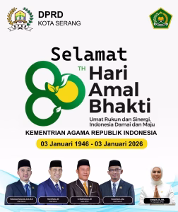 DPRD Kota Serang mengucapkan memperingati Hari Bakti Kementerian Agama RI ke 80 thn. “Umat Rukun dan Sinergi, Indonesia Dama dan Maju”